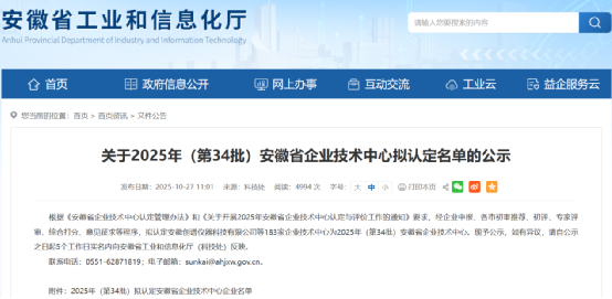 近日,安徽省工業(yè)和信息化廳公布了2025年(第34批)安徽省企業(yè)技術(shù)中心擬認定名單。安天利信憑借卓越的自主創(chuàng)新能力、持續(xù)的科技研發(fā)投入和完善的創(chuàng)新體制機制,成功入選。