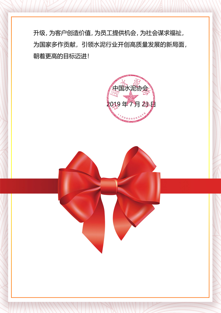 中國水泥協(xié)會致海螺集團(tuán)賀信